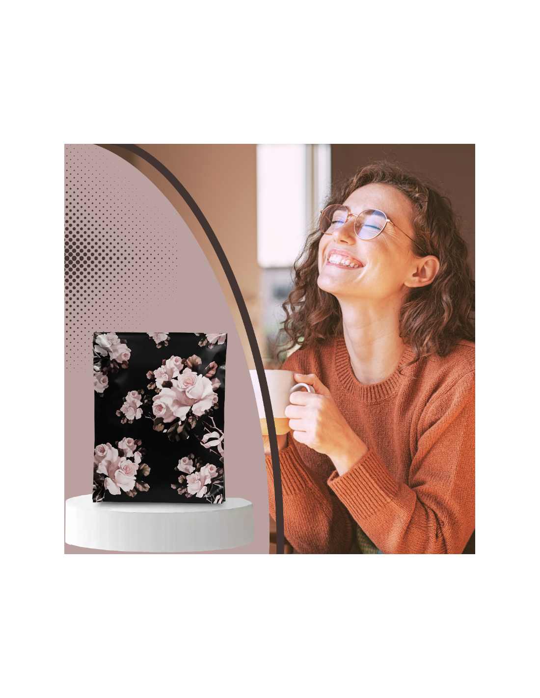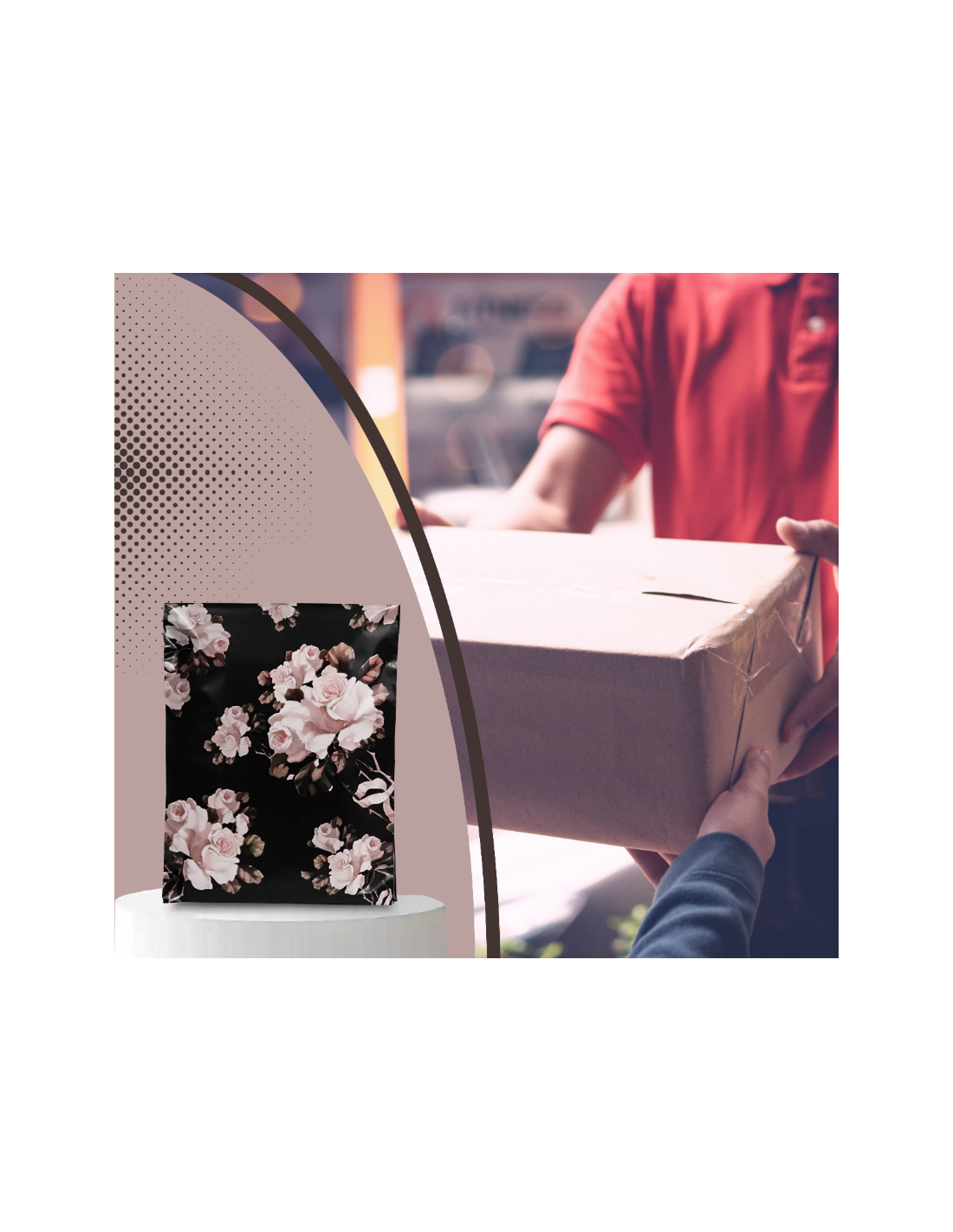 Enveloppes d'expédition colorées en polyéthylène avec poignée noires « Roses blanches » format B4 25,5 x 37 + 7cm