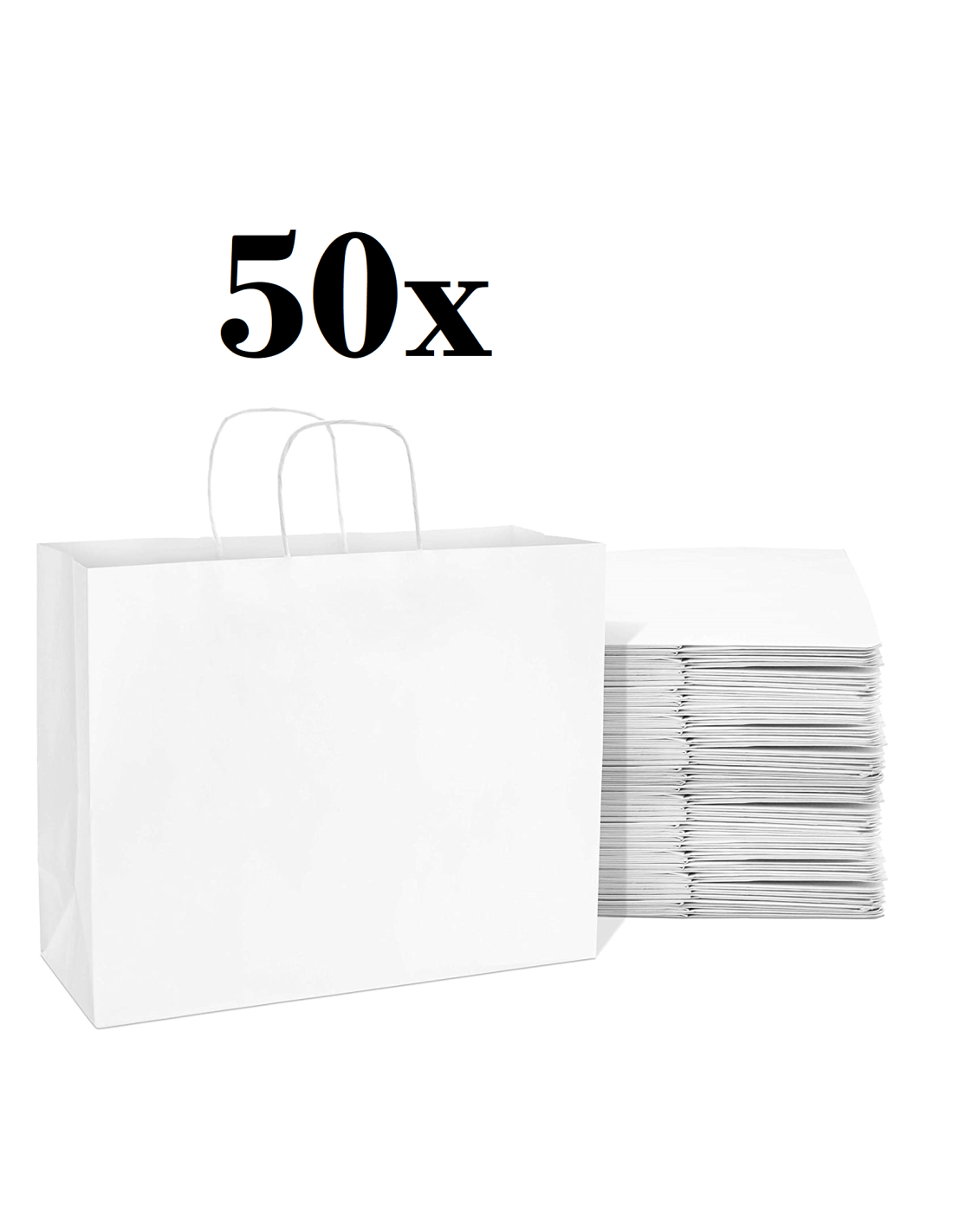 50 x Sacs kraft blanc à poignées torsadées 26x17x25cm