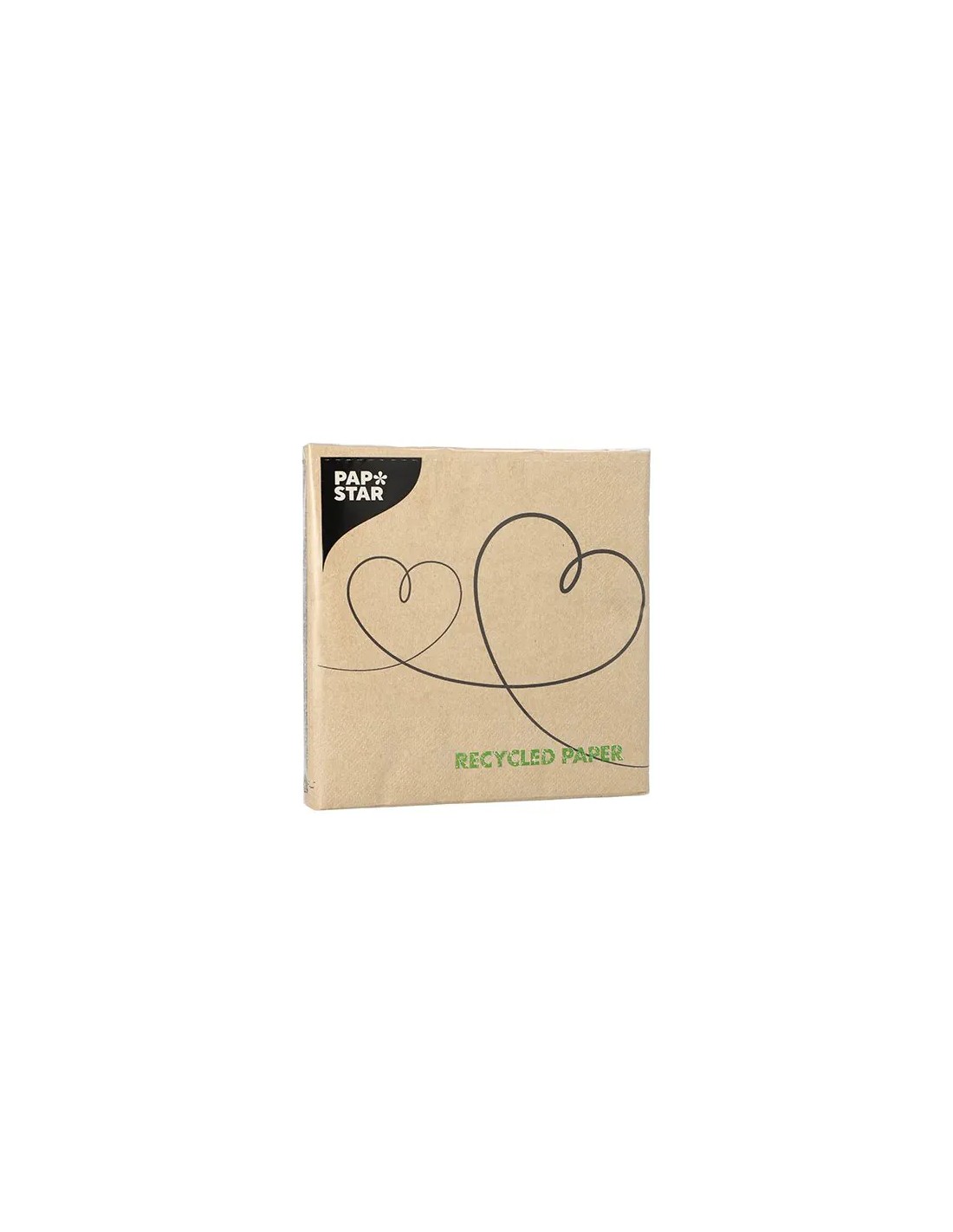 Serviettes en papier 3 plis, pliées en 1/4, format 33×33 cm, motif « Hearts ». Fabriquées à partir de papier recyclé et certifiées FSC, paquet