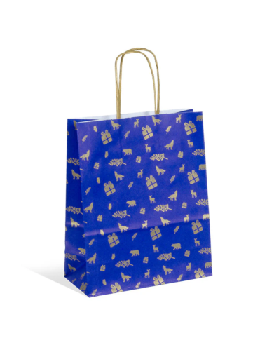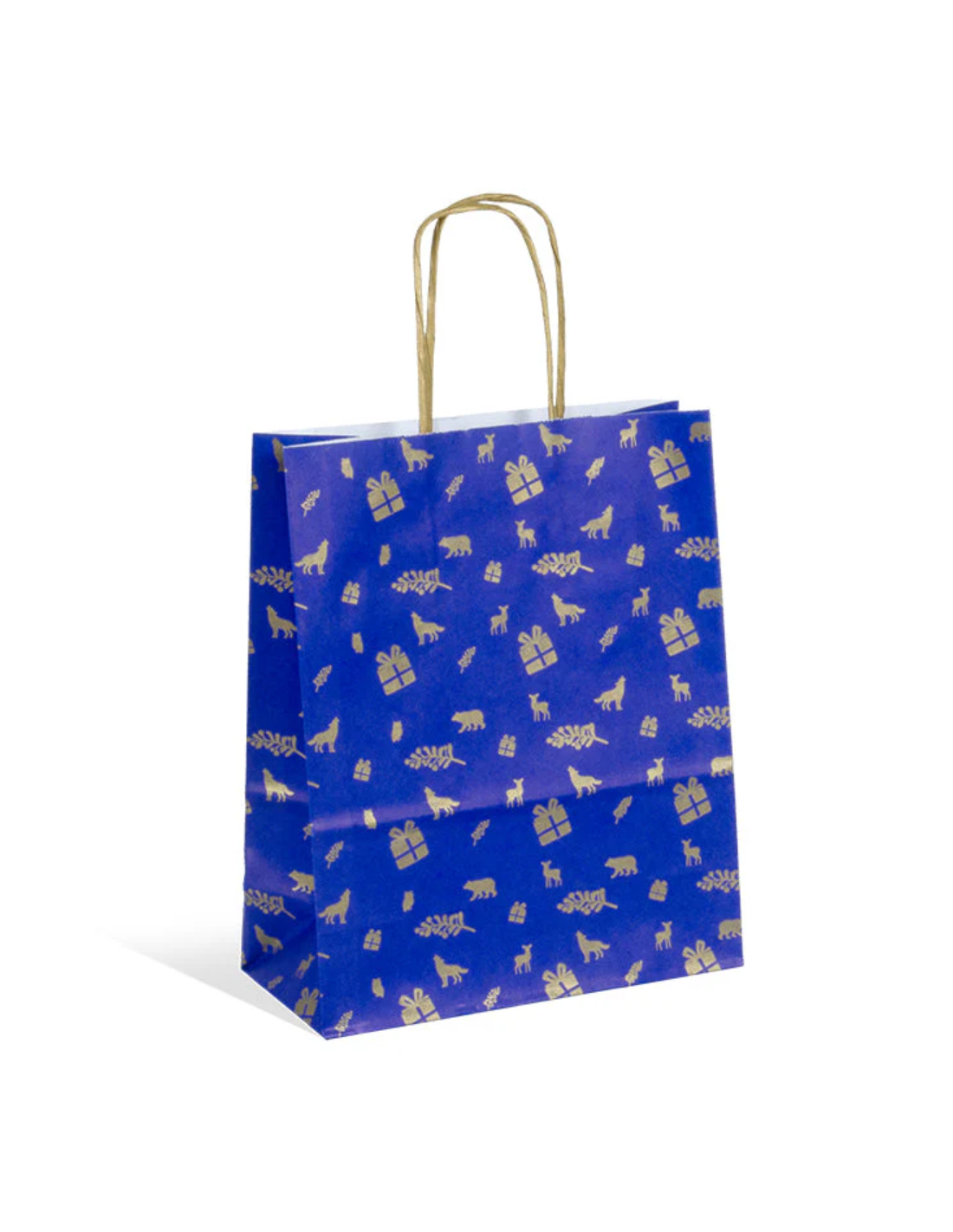 Kerst draagtassen van kraftpapier gedraaide handvaten " Noach" blauw 18x8x22cm