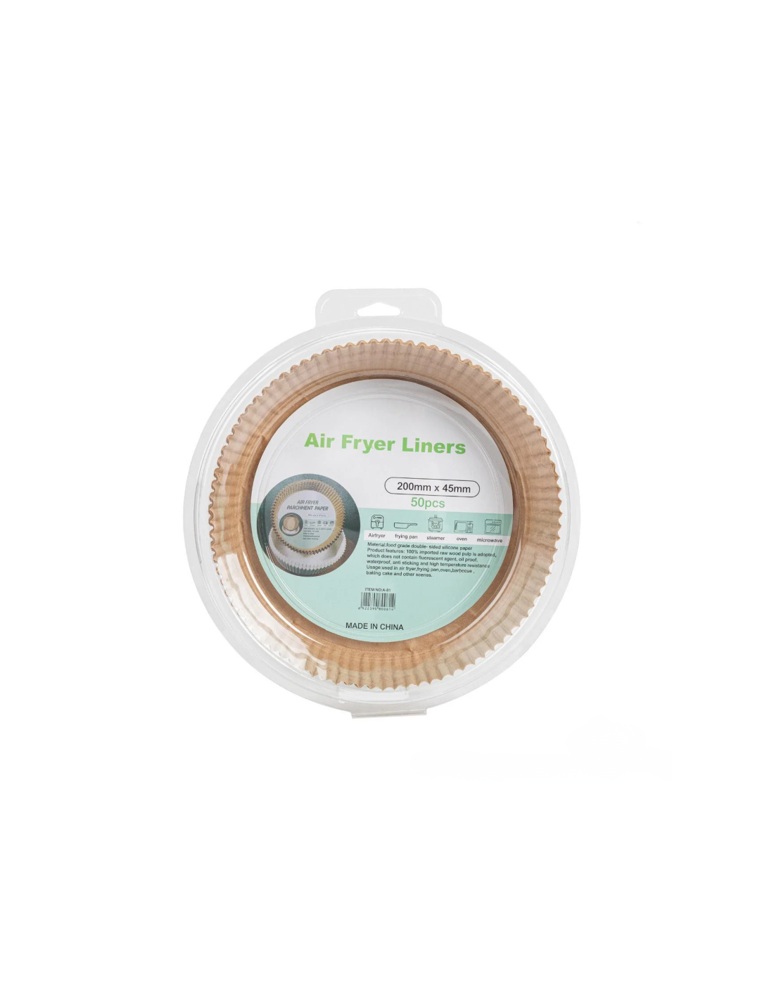 Deze ronde wegwerpbakjes van bakpapier zijn speciaal ontworpen voor airfryers in maat XL en XXL. Met een diameter van 200 mm en een hoogte van 45 mm voorkomen ze dat voedsel blijft kleven en houden ze het airfryer-mandje schoon. Hittebestendig, antikleef en eenvoudig weg te gooien na gebruik. Ideaal voor grote porties, dagelijks gebruik en professionele toepassingen. Verpakt per 50 stuks.