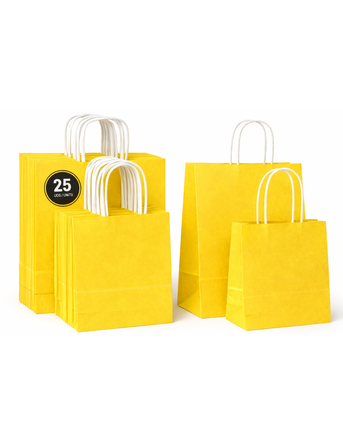 50 x Sac en papier kraft lisse couleur à poignées torsadées 2 tailles : 25 pcs x 18x8x22cm et 25 pcs x 22x10x28cm