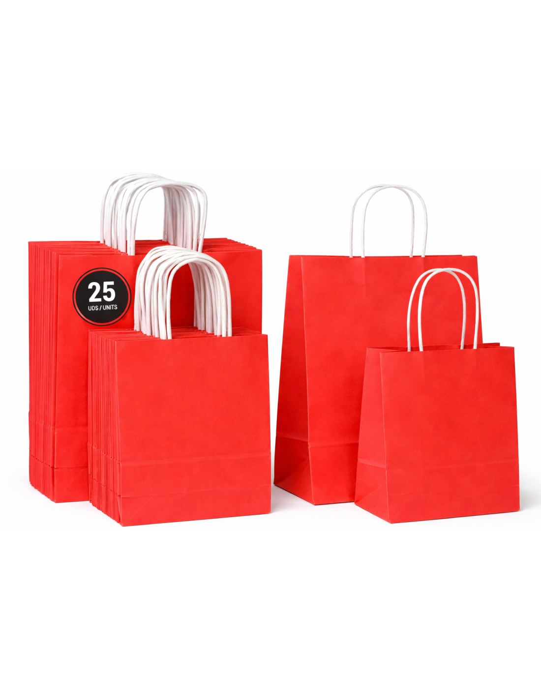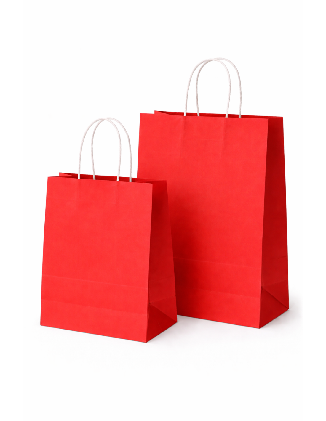 50 x Sac en papier kraft lisse couleur à poignées torsadées 2 tailles : 25 pcs x 18x8x22cm et 25 pcs x 22x10x28cm