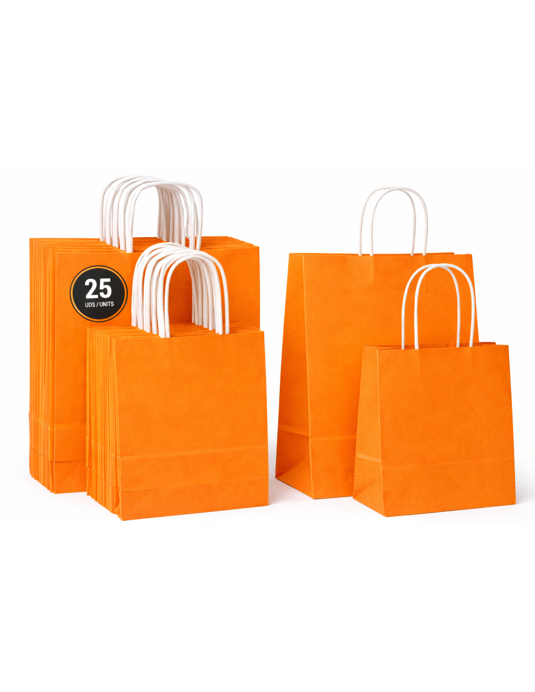 50 x Sac en papier kraft lisse couleur à poignées torsadées 2 tailles : 25 pcs x 18x8x22cm et 25 pcs x 22x10x28cm