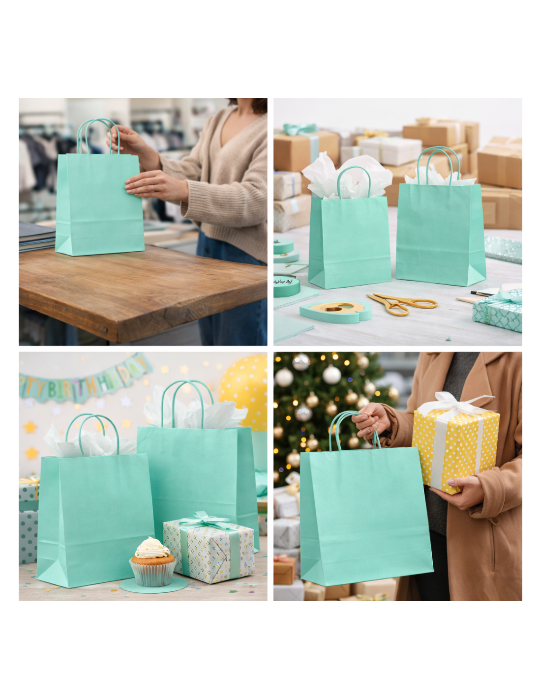 De Mintgroen papieren cadeautas met gedraaide handvatten 18x8x22 cm is ideaal om uw cadeaus en producten op een elegante manier te verpakken. Gemaakt van sterk kraftpapier, biedt deze tas een praktische en milieuvriendelijke verpakkingsoplossing voor winkels, evenementen en cadeauverpakkingen. De moderne Mintgroen kleur geeft uw verpakking een frisse en stijlvolle uitstraling. Dankzij de stevige gedraaide handvatten is de tas comfortabel te dragen. Perfect voor winkels, cadeaus, verjaardagen, evenementen en webshops.