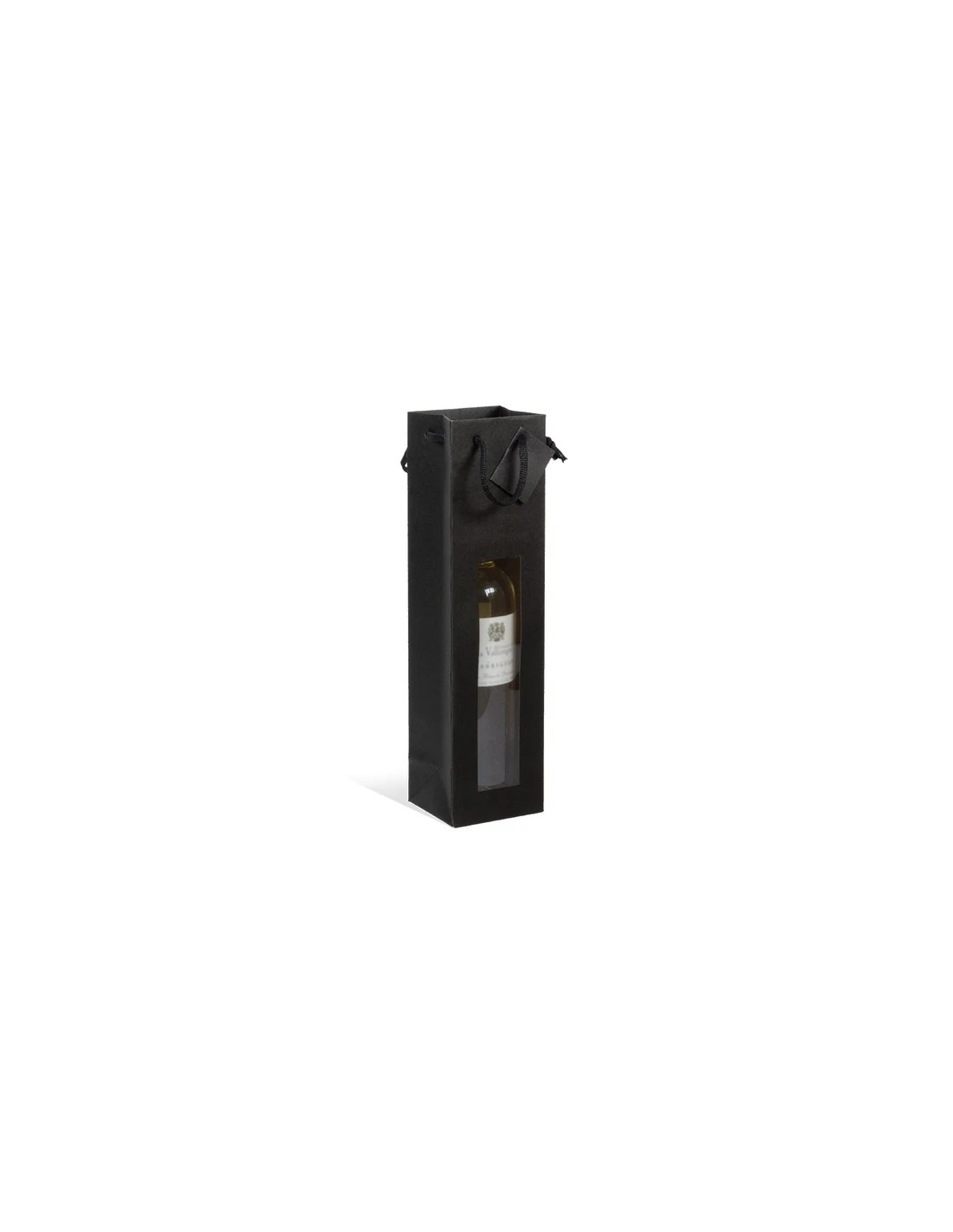 • Product : Luxe draagtas voor 1 fles met venster in zwart kraftpapier