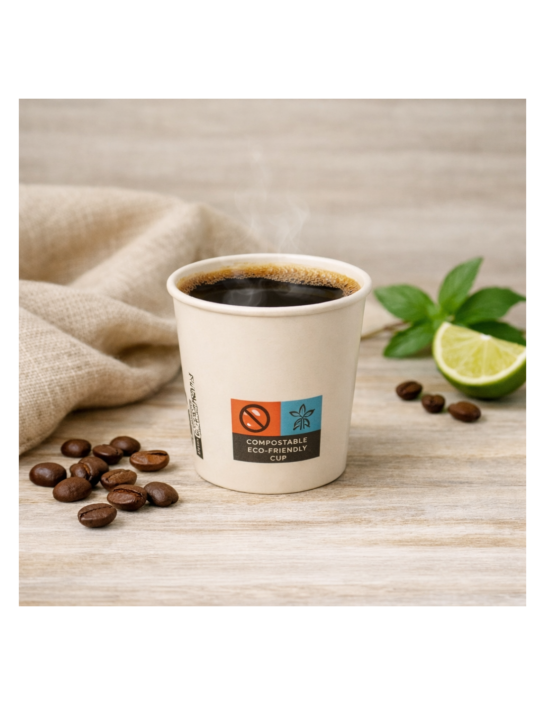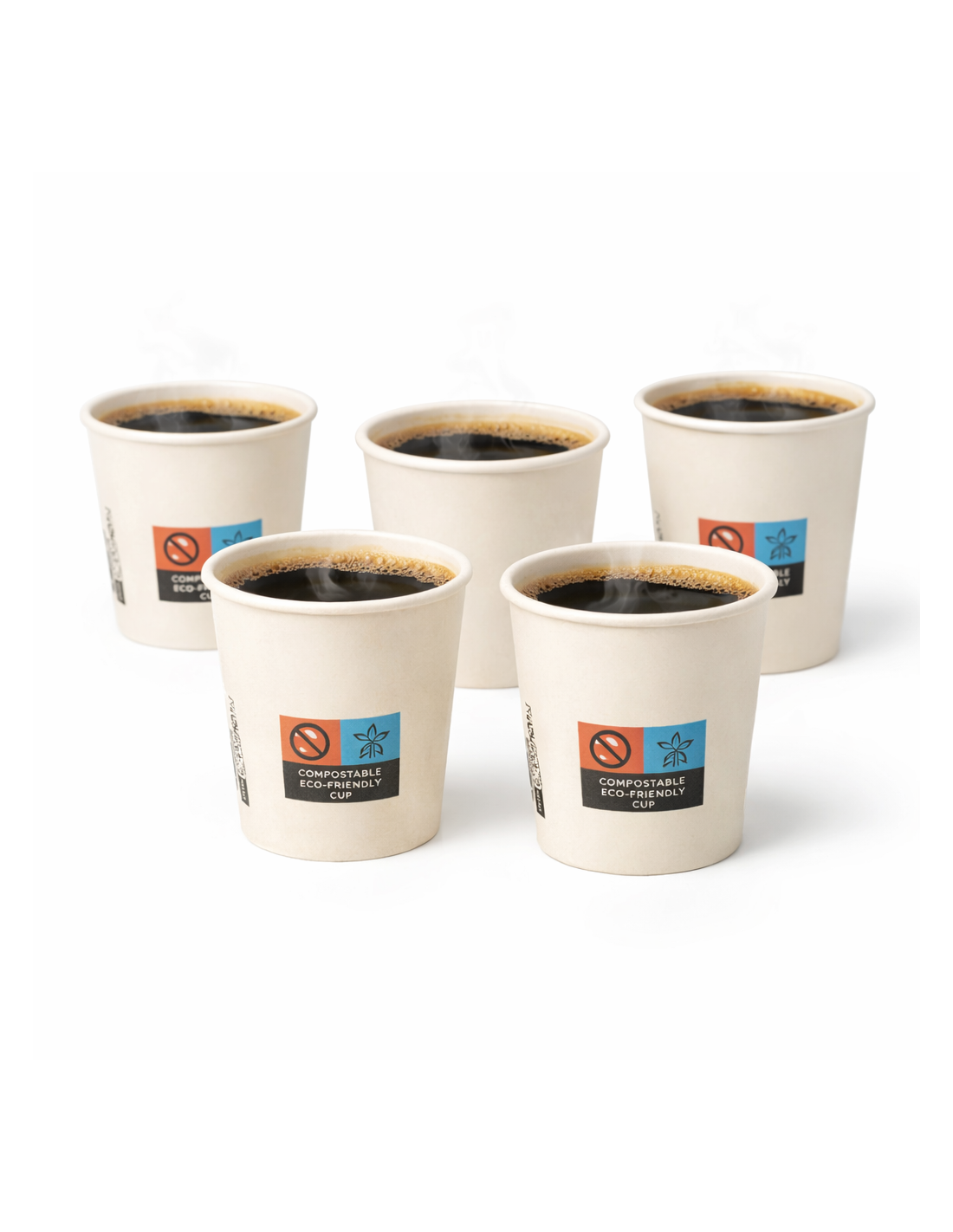 Het kleine formaat is bijzonder geschikt voor espresso en andere warme dranken in kleine porties. Het karton met coating zorgt voor stevigheid tijdens gebruik, terwijl de FSC Mix Credit-certificering een meer verantwoorde papierherkomst benadrukt.